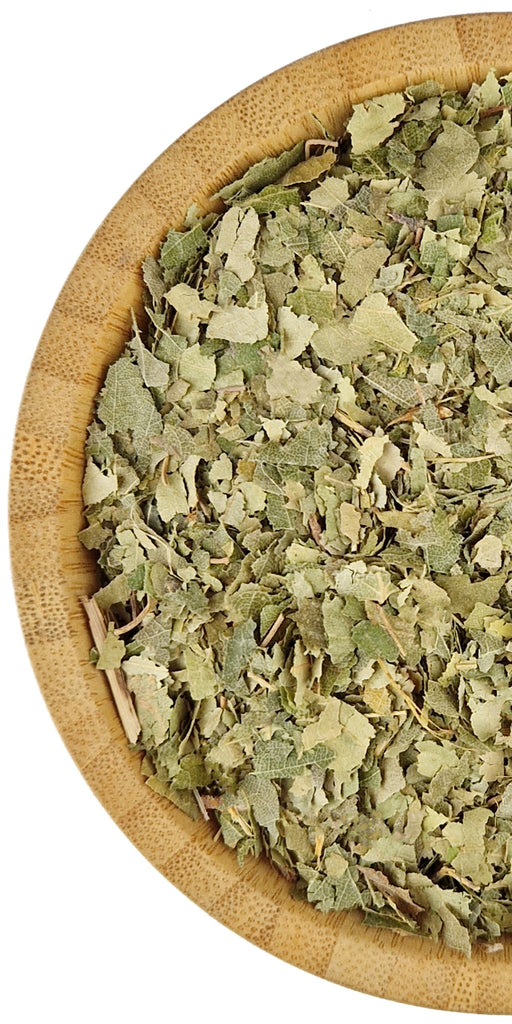 Dried birch leaves (Betula pendula) cut and prepared as a food-grade herbal tea ingredient. Suitable for loose herbal infusions, these gently dried leaves retain their natural botanical character and are ideal for traditional herbal tea preparation.